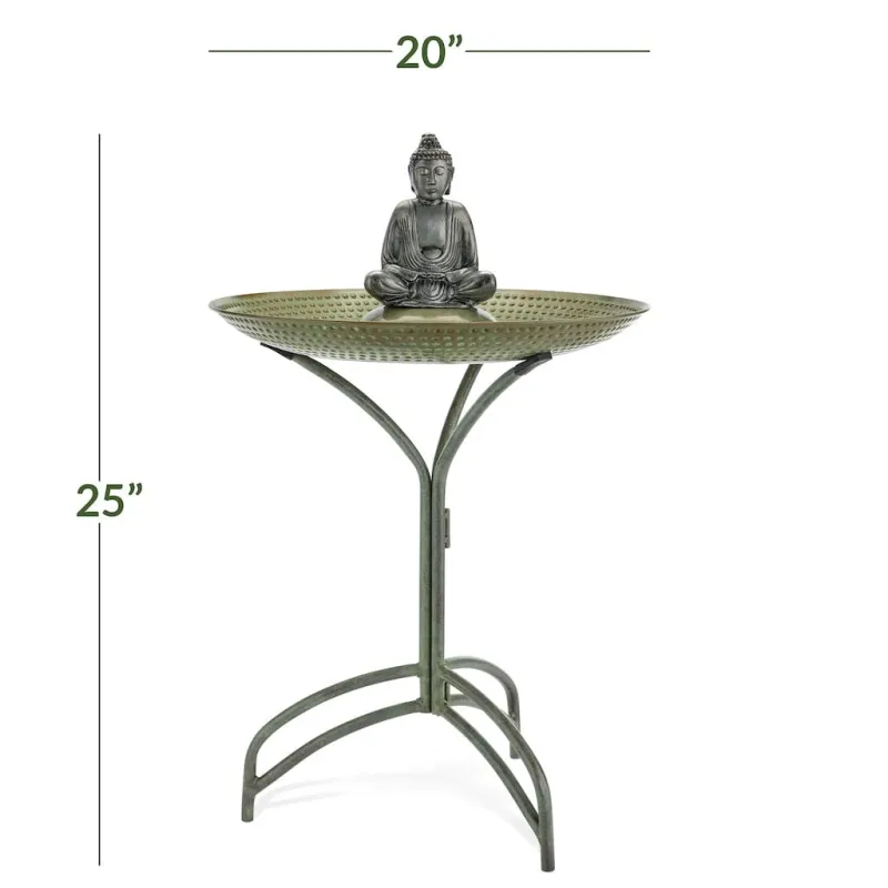 Discover serenity with the Good Directions Free Standing Blue Verde Tranquility Bird Bath. Featuring a calming Buddha Statue Water Fountain, this large 20″ verde copper metal basin adds elegance to outdoor spaces. Perfect for bird enthusiasts, it functions as a birdbath and hummingbird feeder, making it an ideal gift. Create a peaceful sanctuary where birds can bathe, sip, and relax in your backyard or garden.