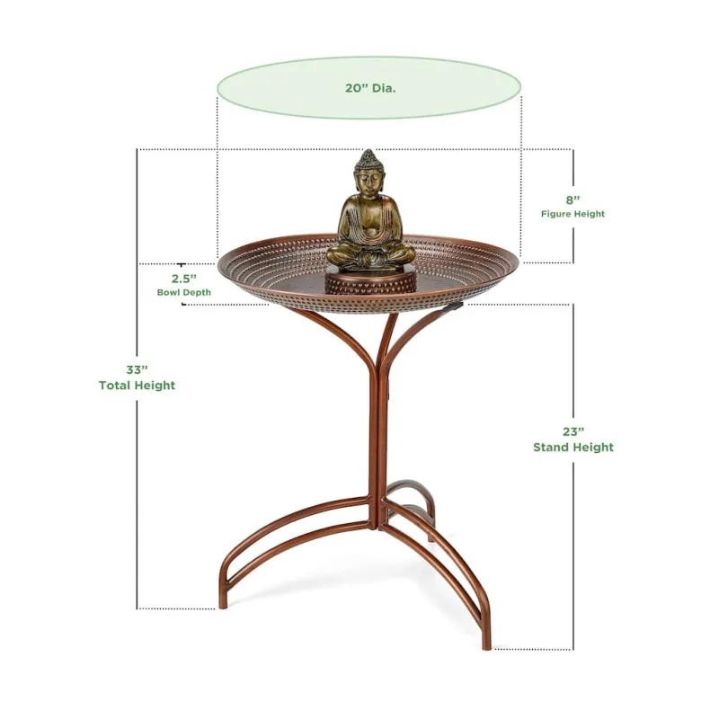 20-inch Copper Bird Bath with Buddha and Stand by Good Directions