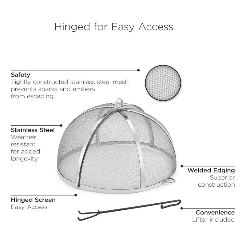 The Good Directions 26-inch Medium Stainless Steel Spark Screen with Lifter is an excellent addition to any outdoor fire pit setup. The spark screen is made of intricately woven stainless steel mesh, providing additional protection from any outdoor fire. The included spark screen lifter lets you quickly slide the screen open and close.