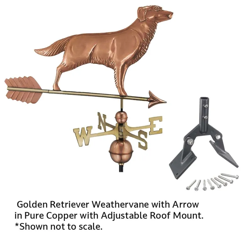 Golden Retriever Weathervane with Arrow in Pure Copper by Good Directions