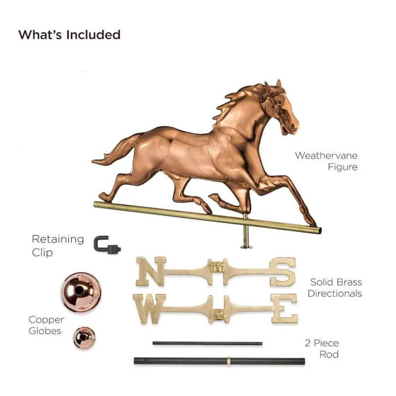 This elegant thoroughbred with its head held high is a classic weathervane design from 1850 that you can now adorn on the rooftop of your home, garage, cupola, barn, or gazebo. Since 1982, Good Directions has been crafting pure copper weathervanes that are unmatched in style, quality, and durability, making them the perfect choice for homeowners who take pride in their homes.
