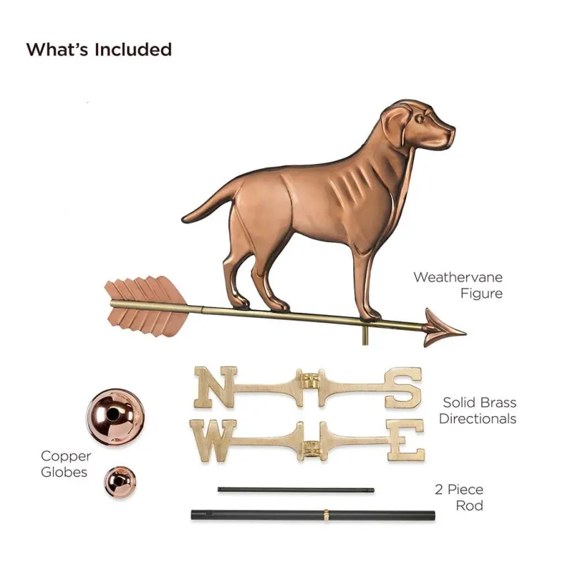 Labrador Retriever Weathervane with Arrow in Pure Copper by Good Directions
