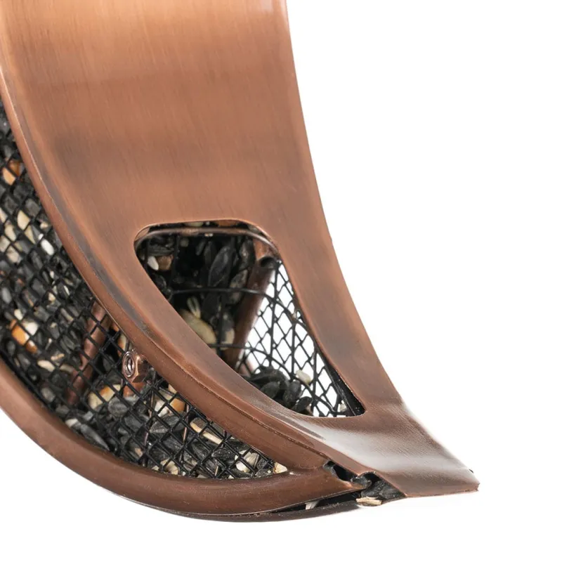 Seeing this unique, crescent, moon-shaped feeder, your backyard’s birds will be ecstatic. The large platform provides a comfortable place for birds to perch and enjoy a hearty meal while capturing the magic of the night sky. The feeder has a long-lasting and stylish copper finish and durable mesh panels that can hold up to 4 pounds of seed. The easy-fill panel makes it easy to keep the feeder well-stocked, and you won’t have to fill it as often due to its size.