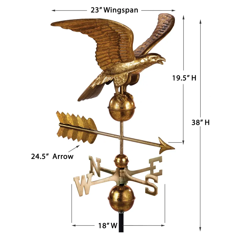 Smithsonian Eagle Weathervane in Pure Copper with Golden Leaf Finish by Good Directions