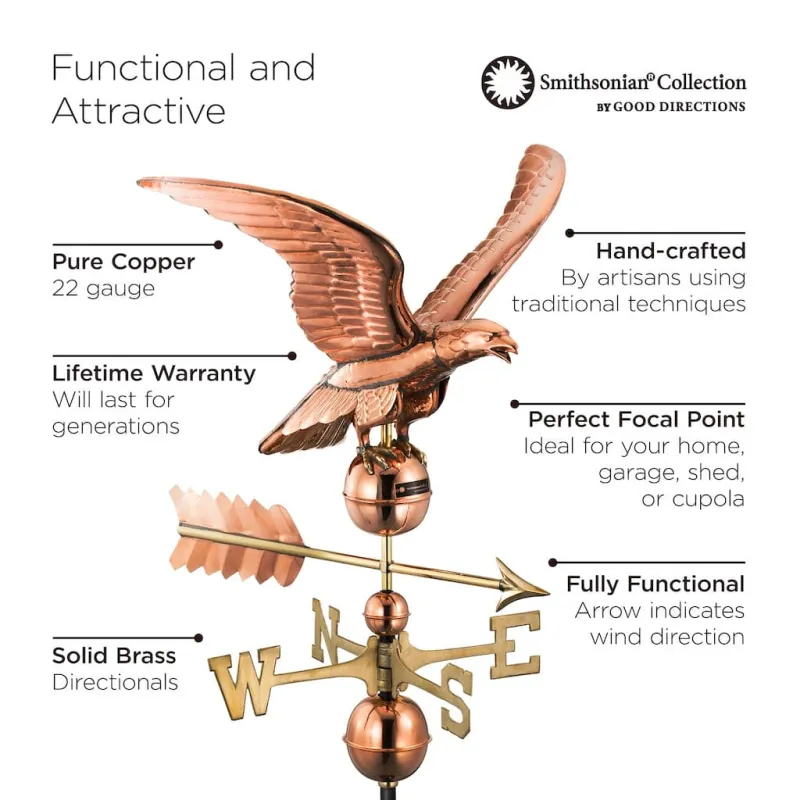 Good Directions Smithsonian Eagle Weathervane in Pure Copper with Golden Leaf Finish $223.00 – $252.00Price range: $223.00 through $252.00