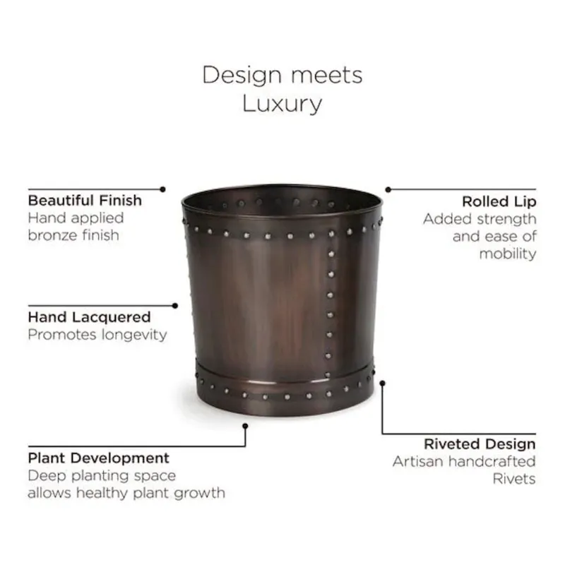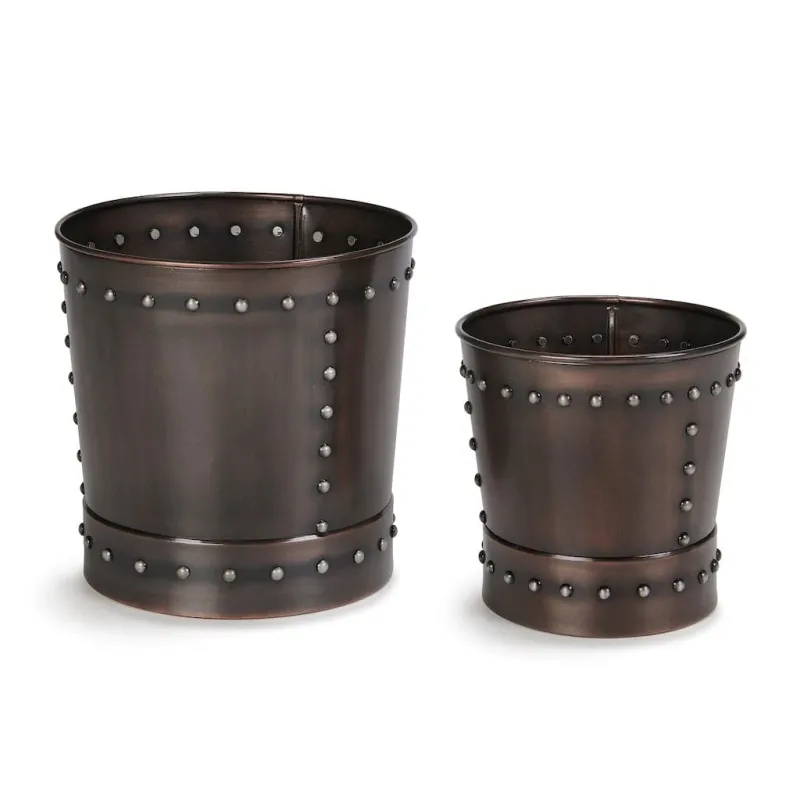 Unique Medium Riveted Bronze Planter Set of 2 by Good Directions