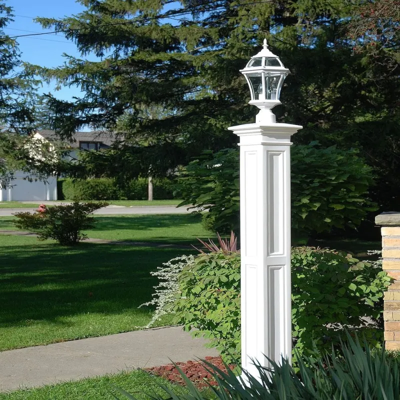 With its clean lines and ‘no fuss’ design, the Liberty Lamp Posts will immediately elevate your curb appeal. These lamp posts are made from 100% high-grade Polyethylene, are weatherproof, and have an ultra-tough construction. The packaging includes a 6-foot decorative post and steel ground mount conduit. (Light fixture and wiring materials not included) The Steel ground mount should be buried in concrete for secure installations. It is available in Black and White.
