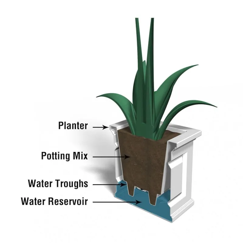 Mayne’s products are made with 100% high-grade polyethylene resin. The resin used in these planters have built-in UV inhibitors that ensure it does not fade easily. Double wall design provides the soil with adequate insulation from surrounding weather conditions. Built-in water reservoir provides plants with a consistent source of moisture. Mayne offers a 15-year residential warranty or a 5-year commercial warranty on this square planter. Mayne’s products are proudly designed in Canada and made in the USA.