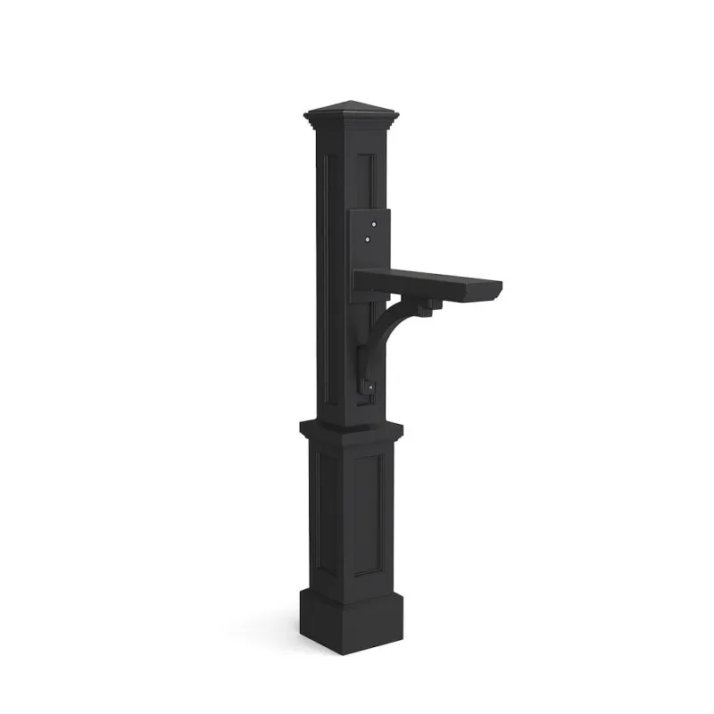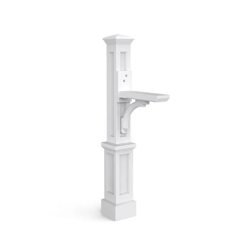 Our Newport Plus Single Arm Mail Post perfectly captures the New England way of living. Its inset panel design with rich architectural details fits in perfectly whether it is used out in the countryside or in the suburbs. These Polyethylene mail posts are weatherproof and have an ultra-tough construction. The packaging includes a decorative post, mailbox support arm and hardware kit. Best suited for mailboxes weighing less than 8lbs. .