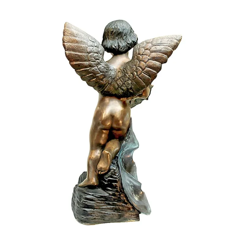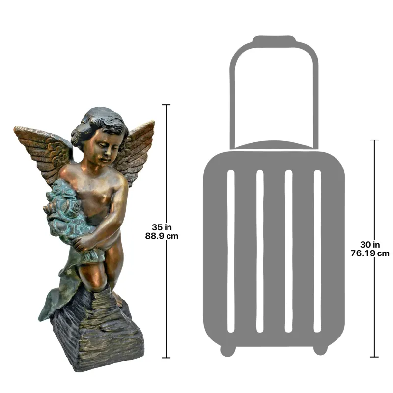 Add eternal peace and harmony to your home or garden with our magnificent bronze angel sculpture based on a coveted Italian antique. The Staglieno Memorial Angel is exquisitely detailed, from the feathered wings and bouquet of roses to the lofty cloud upon which she rests. Our bronze angel sculpture is expertly finished with a hand-applied two-tone multidimensional sepia and color-washed emerald verde patina. The heavenly angel sculpture is individually cast in the traditional lost wax method, which highlights her inspirational face and devotional beauty and guarantees heirloom quality. Sure to be a focal point, this Design Toscano exclusive heirloom-quality bronze garden statue conveys that you take the exterior of your home as seriously as the interior.
