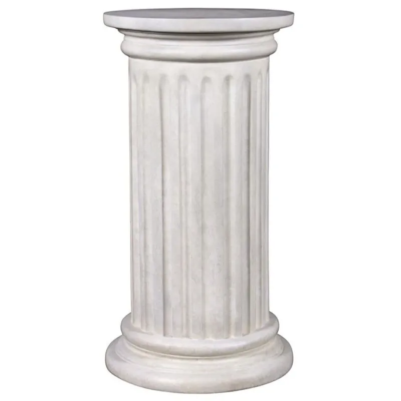 With characteristic smooth, chiseled lines, the Doric columns are the most utilized and recognizable of all the classic architecture pillars. Set atop a fluted shaft with a circular capital created of fiberglass reinforced designer resin and hand finished in an antique stone finish, this Design Toscano exclusive will add an imperial touch to your bath, spa or pool. As your garden matures and flourishes over the season, your sculptural focal pieces, from statues to urns, can get hidden by the growth. Rise above the plants and give your garden centerpieces a position of distinction with our Roman Doric riser stand. Timeless and inspirational, use it as a side table indoors, or make a statement as a garden focal point plinth base topped with one of our much-admired statues.