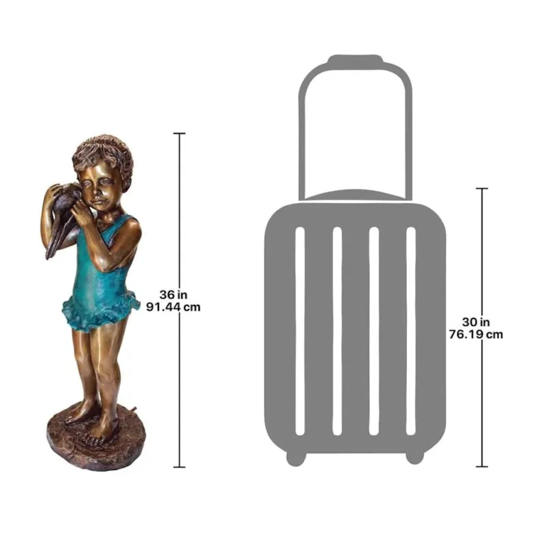 Do you still lift a shell to listen for the ocean? Rediscover the timeless joy of quietly leaning one’s head into a beautiful seashell to listen for the call of the ocean with this innocent miss who captures a moment of pure childhood joy! Our distinctive, 360-degree, three foot tall bronze child statue is expertly finished with a hand-applied, classic sepia bronze patina accented by an antiqued emerald verde patina to bring out the amazing detail. Cast and crafted one piece at a time in the traditional lost wax method, which highlights the detail of the sculpt and guarantees lasting beauty. Sure to be a garden focal point, this Design Toscano, heirloom-quality bronze girl statue conveys that you take the exterior of your home as seriously as the interior. Piped from her shell so you may optionally cascade flowing water from the 290 GPH pump into your pond or fountain. Simply add the optional recirculating pond pump kit to see the liquid cascade dance from the shell, creating beautiful water music for your garden.