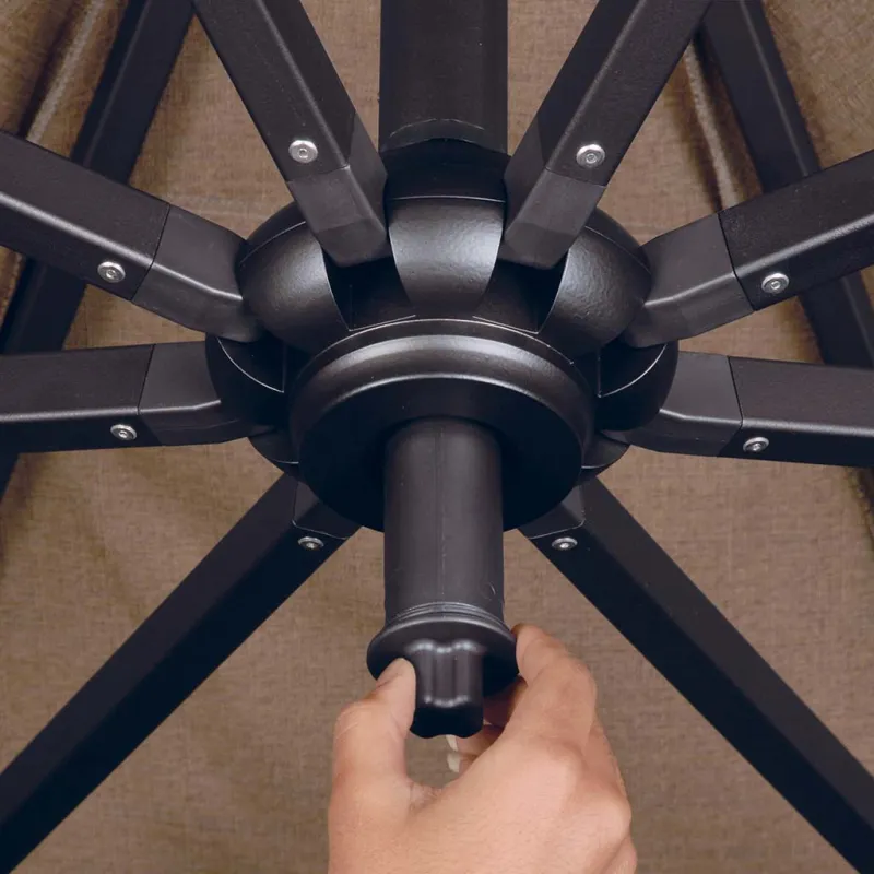 The 8.6’ Skye Cantilever Umbrella is an effective outdoor shade solution for any backyard. With a simple turn of the knob, the Skye provides shade and comfort with infinite front-to-back tilt capability. Move umbrella position with the convenient foot pedal to create a multi-position 360-degree shade rotation, following the sun for outdoor enjoyment.