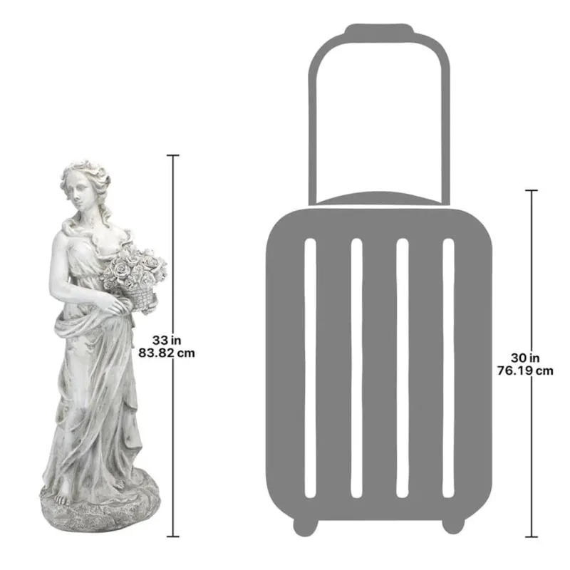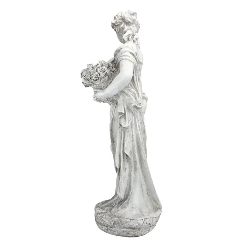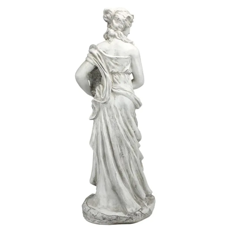 This classic garden statue is an allegory portraying one of the goddesses of the seasons in the Neoclassical style. The Spring Goddess is easily distinguished by the presence of a woven basket brimming with blossoms. The sculpture is based on an English estate original and is incredibly detailed, from the draped gown to the handsome face. The design is drawn from the Roman tales of the Horae, the voluptuous goddesses, and is crafted in quality designer resin. The Design Toscano classic sculpture is finished in antique stone, perfect for year-round enjoyment.