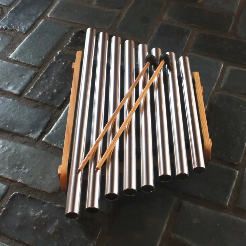 This wind chime plays the ancient Greek pentatonic scale created by Olympos, a Phrygian flutist and lyre player of the 7th century B.C. Olympos is credited with introducing the flute into Greece from Phrygia, adding a new instrumental sound to the country. He was also known for being inventive with rhythm, which some argue makes him the original King of Rhythm and Blues. Plutarch, the Greek historian and biographer, recognized Olympos as the father of Greek music due to his contributions. Even after almost three thousand years, Olympos’s bluesy scale, tuned in the pure “just intonation” system, is still heard today in the Japanese koto and on a Woodstock Chime.